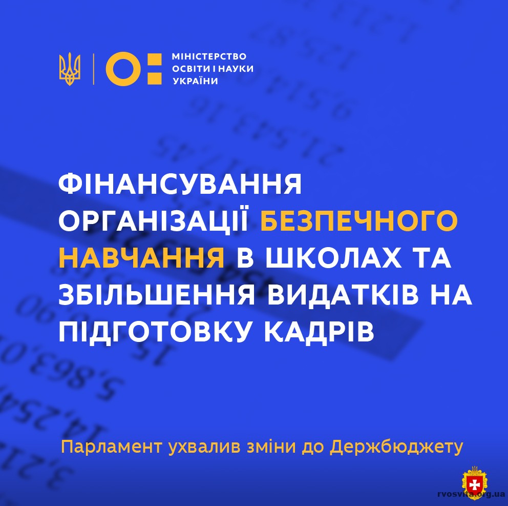 Законодавчі зміни дають можливість, як виняток з положень частини четвертої статті 103-2 Бюджетного кодексу України, використовувати у 2020 році залишки коштів освітньої субвенції з державного бюджету місцевим бюджетам, крім коштів, що мають цільове призначення, виділених відповідно до рішень Кабінету Міністрів України у 2019 році, на закупівлю товарів, робіт і послуг, необхідних для забезпечення безпечного навчального процесу у закладах загальної середньої освіти.