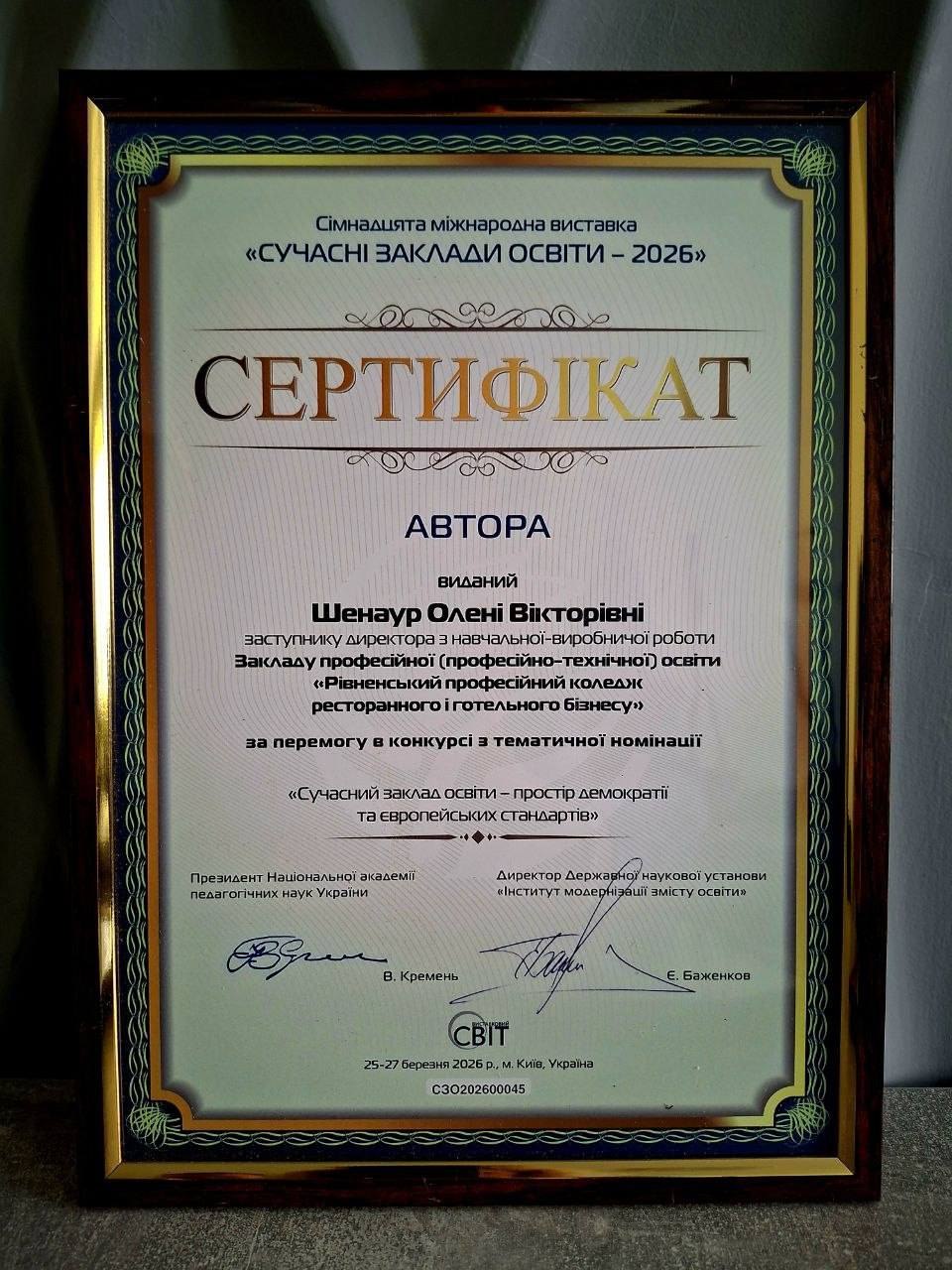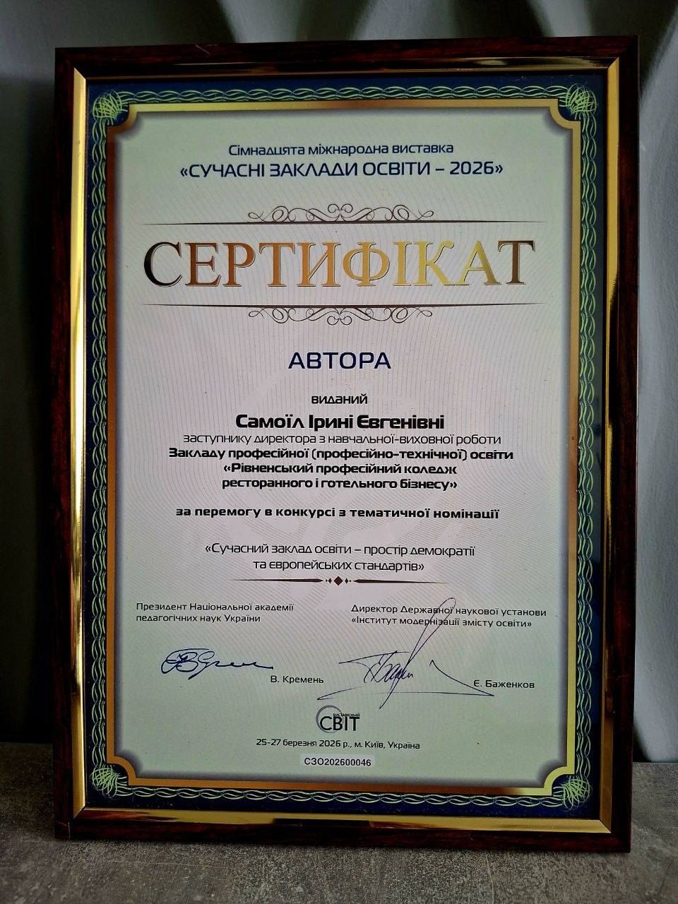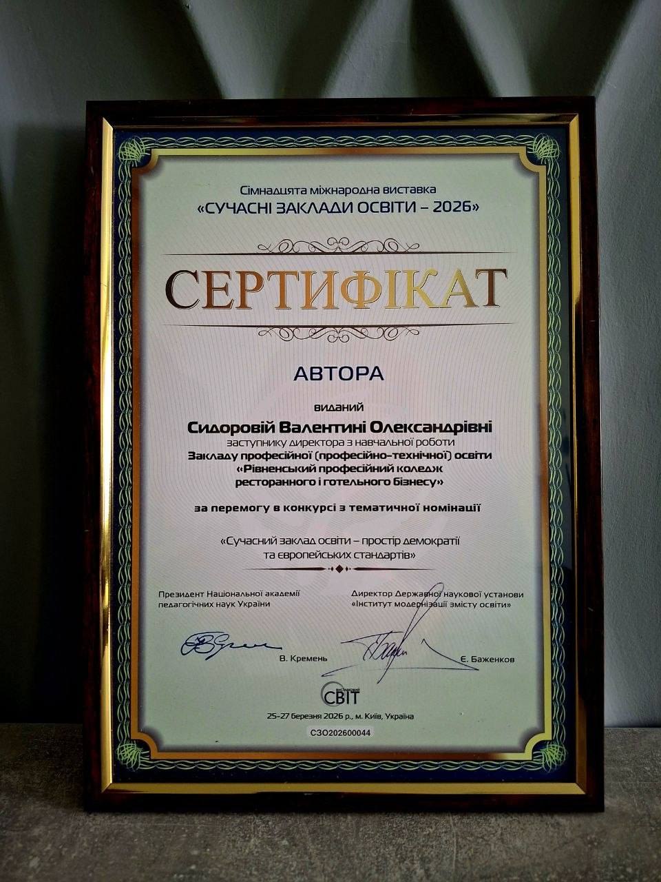 ▪Управлінська команда закладу отримала сертифікати у тематичних номінаціях